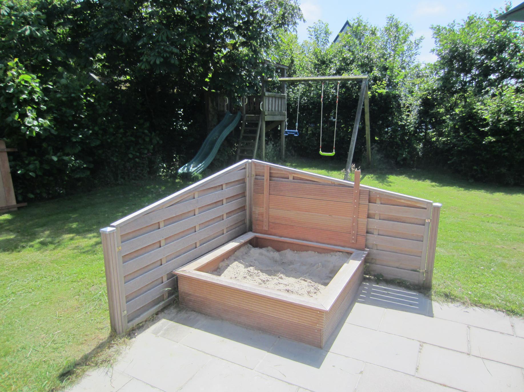 Der Garten befindet sich auf der Rückseite des Hauses an der Südseite. Da der Garten nicht zur Straße hin liegt und rundherum zugewachsen ist, bietet er viel Privatsphäre. Für die Kinder haben wir ein Spielplatz gebaut und ein Sandkasten gepostet. Es gibt genügend Gartenstühle und einen Grill.